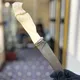 - Нож Зла, выполненный из рога буйвола, дамасской стали и бивня мамонта, отличается мощью и загадочностью, а его украшение – резным шпинелью в огранке кабошон – добавляет образу драматизма.